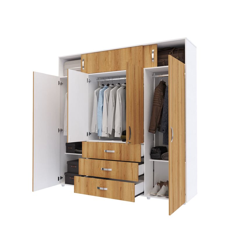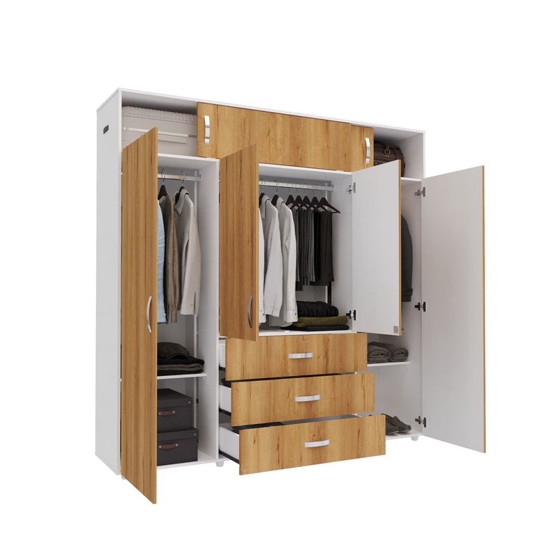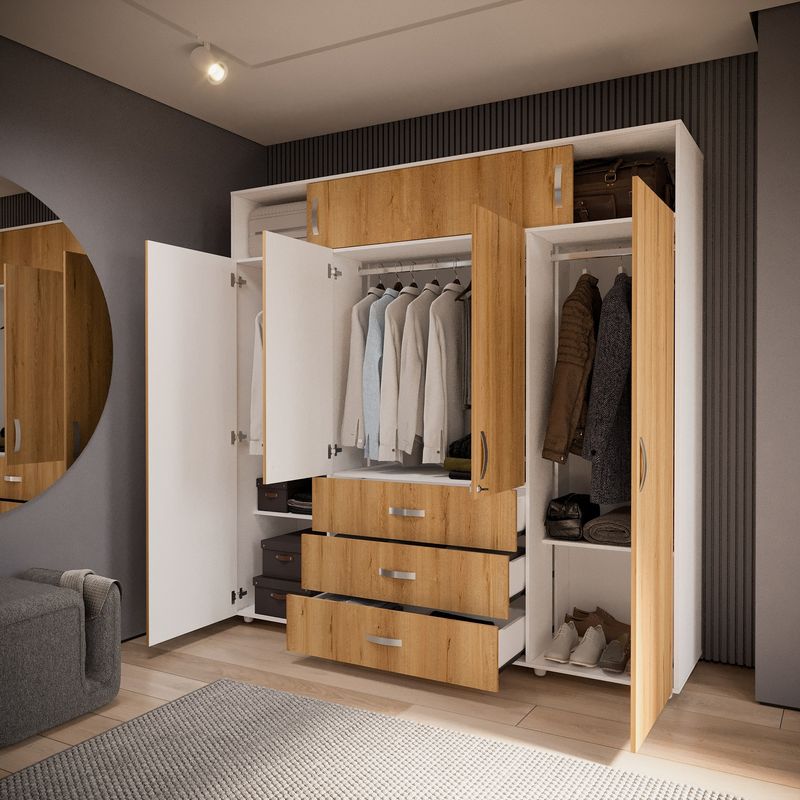 Este Armario ¡es el complemento perfecto para tu habitación! Dale un look moderno al espacio y organiza todo en su lugar: prendas, zapatos, ropa de cama, maletas y demás objetos, y mantén siempre ordenada tu habitación.