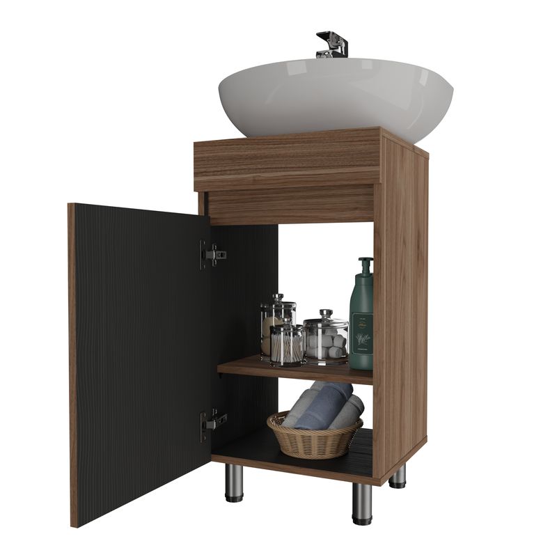 Con el Mueble Lavamanos a Piso dale personalidad a tu baño, resalta su estética natural y mantén el orden. Es un mueble listo para armar, en el que puedes organizar toallas, elementos de higiene, plancha o secador para el cabello u otros objetos. No incluye lavamanos